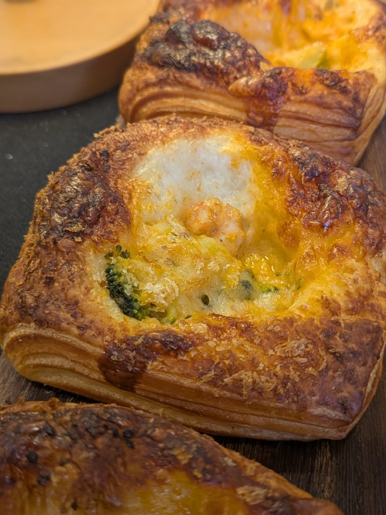 ビスクソースに絡めた海老とブロッコリー、チーズをのせたお食事系デニッシュです。